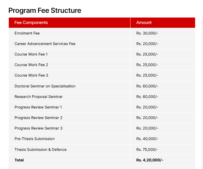 - The total fees for Ph.D Education is ₹ 4.2 Lakhs.
