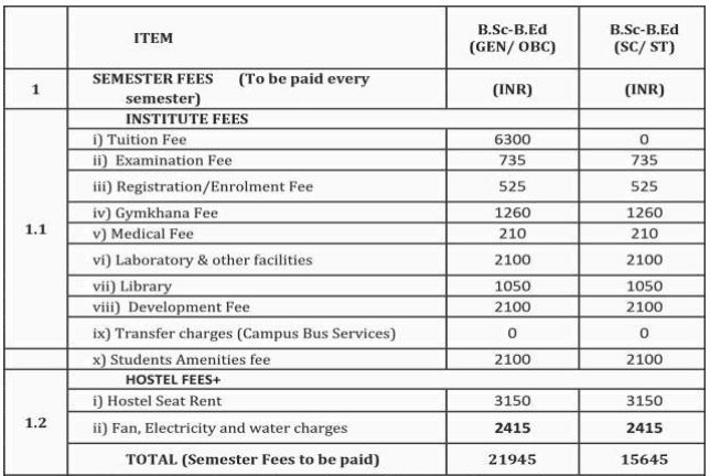 | College | B.Sc + B.Ed Chemistry Total Fees |