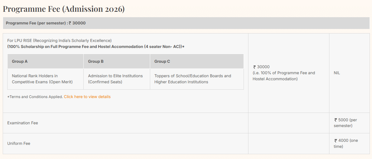 | LPUNEST Exam Date | Jan 10, 2026 - Feb 05, 2026 |