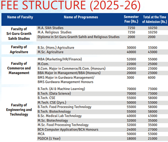 | Fees (2025 - 2026) | Year 1 (in INR) | Year 2 (in INR) | Year 3 (in INR) | Year 4 (in INR) | ||||