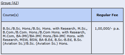 FEE STRUCTURE AS PER OFFICIAL WEBSITE