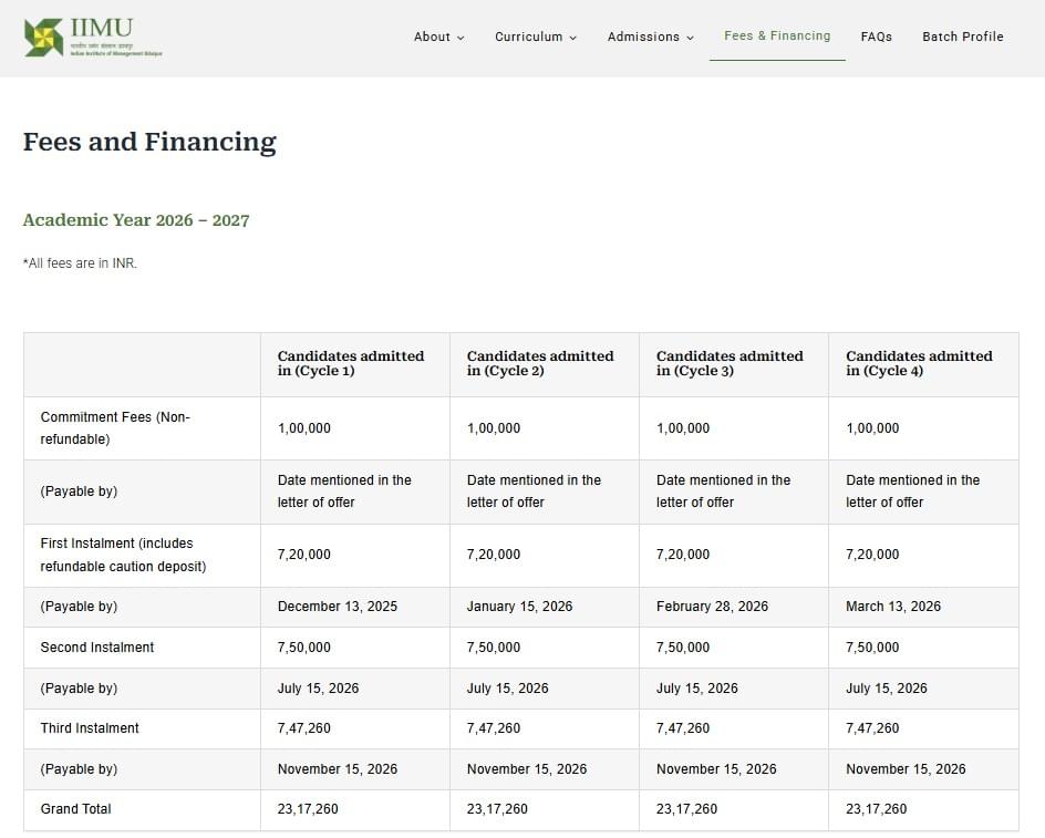 The highest salary package is 33 LPA, the lowest is 15 LPA, and both the average and median packages stand at about 20 LPA. Tuition fees are Rs. 20,00,000 annually. For accommodation, an Executive hostel room costs Rs. 2,30,000 per year, offering more space and a private bathroom, whereas a standard room is Rs. 60,000 cheaper.