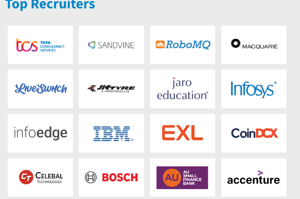 Ans. JKLU attracts both IT and core sector companies during its placements. Top recruiters in 2024–25 included TCS, Infosys, IBM, EXL, Accenture, CoinDCX, and InfoEdge. Students also received offers from HP, Flipkart, and ZS Associates in recent years. These recruiters span consulting, technology, fintech, and e-commerce, offering diverse career paths for graduates in engineering, management, and design disciplines.