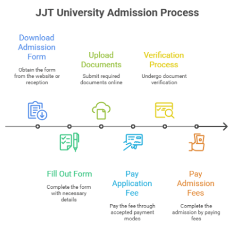 Ans. For admission at JJTU, candidates may apply online or offline by filling out the admission form, uploading required documents, and paying the application fee online. Once the admission process is complete, students must pay the admission fee online and download the confirmation and payment receipt.
