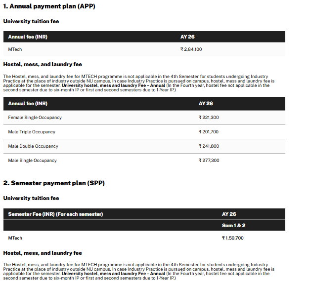 M.Tech Cyber Security Fees at NIIT University Neemrana covers a range of expenses, including tuition fee, course materials, and access to campus facilities.