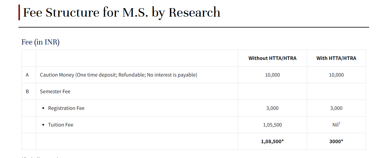 | Fee Type | Total Amount (INR) |