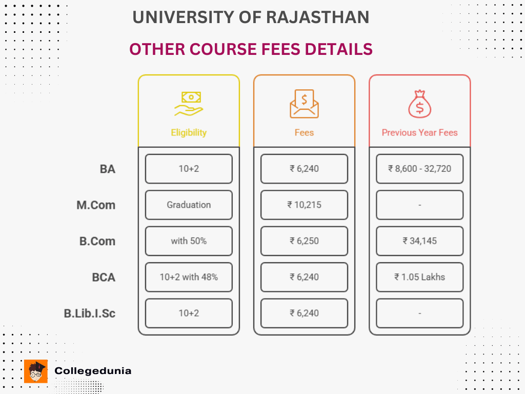 Rajasthan University fees for other UG, PG, Doctorate courses are as follows.