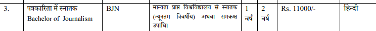 Earlier, BJMC fees at VMOU was ₹ 10,100 (in 2024) for the entire course duration. This shows a fee increase of ₹ 900 over the year.