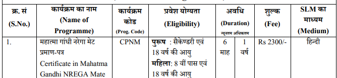 The minimum eligibility for admission to Certification Mahatma Gandhi NREGA Mate at VMOU is 10th Pass.