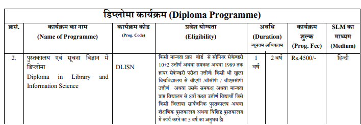 VMOU Diploma Library and Information Science is offered as 1 Year Part Time program. The minimum eligibility criteria for Diploma is 10+2. The total fees for VMOU Diploma Library and Information Science in 2025 is ₹ 4,500 for the complete course duration, which includes total tuition fees of ₹ 4,500.