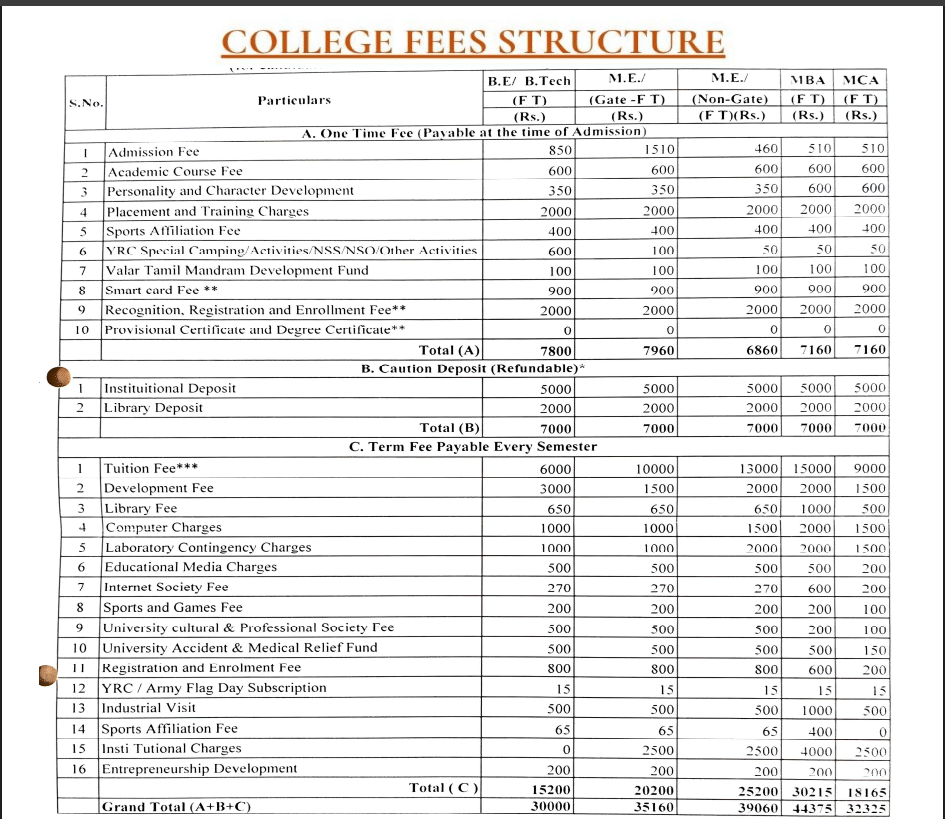 | Fee Type | Total Amount (INR) |