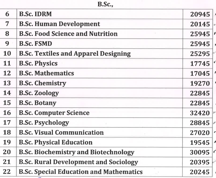 Ques. What is the B.Sc fees at Avinashilingam university?