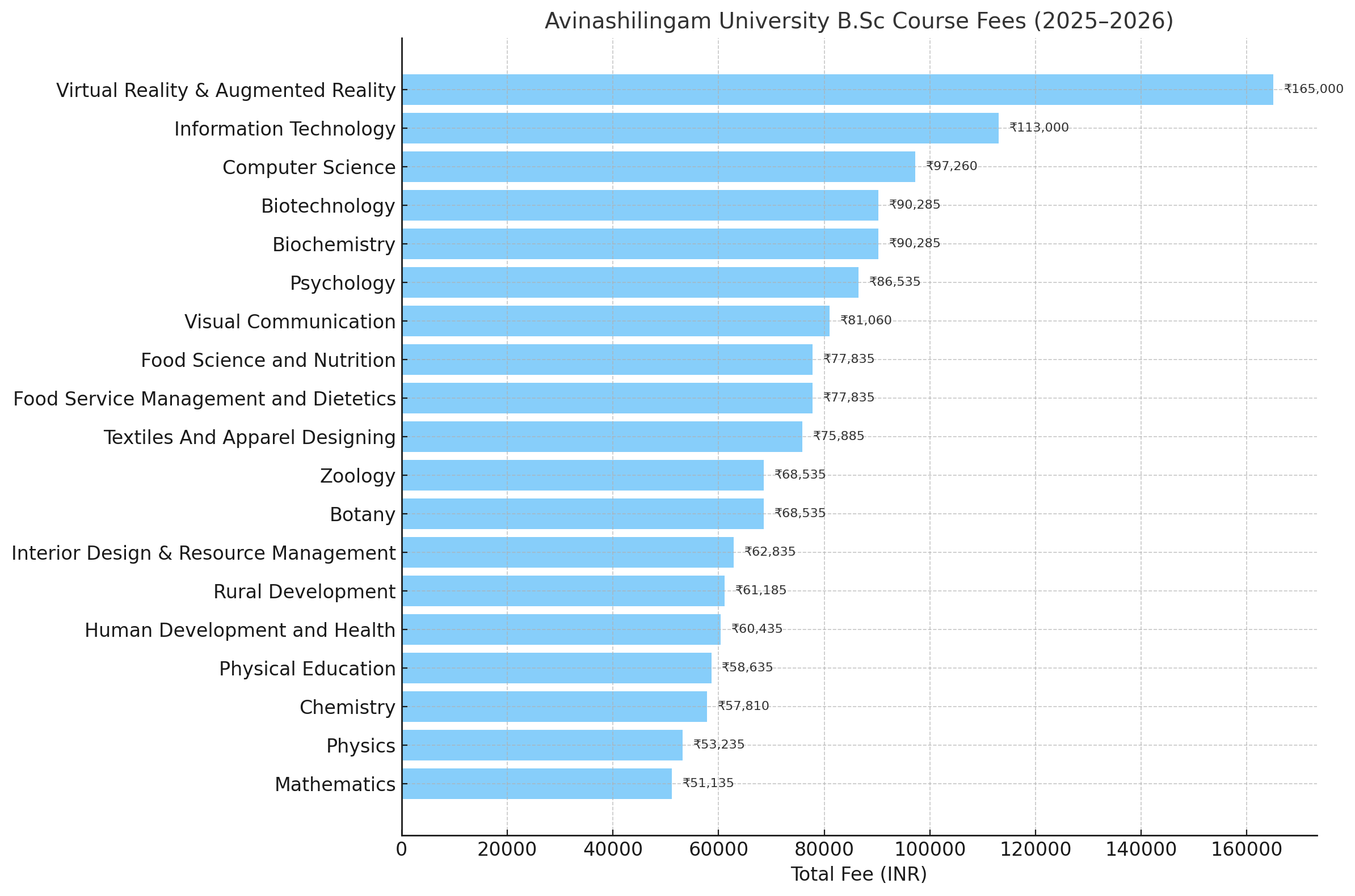 - Avinashilingam university B.Sc Food Science and Nutrition Fees is INR 77,835. Earlier, the fees was INR 1.28 Lakhs in 2024 - 2025.