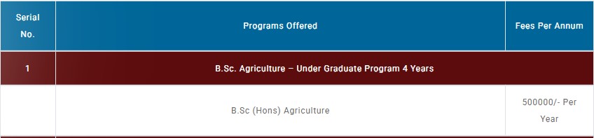 The agricultural program is spread across 8 semesters, each with at least 12 subjects. Students must undertake one mid-term and one main semester exam. During the main semester, they are required to complete 12 records, assignments, practicals, and theory exams, leading to a demanding workload. The Bachelor of Science Honors in Agriculture program costs 150,000 annually, with an additional joining fee of 10,000 and a registration fee of 500.