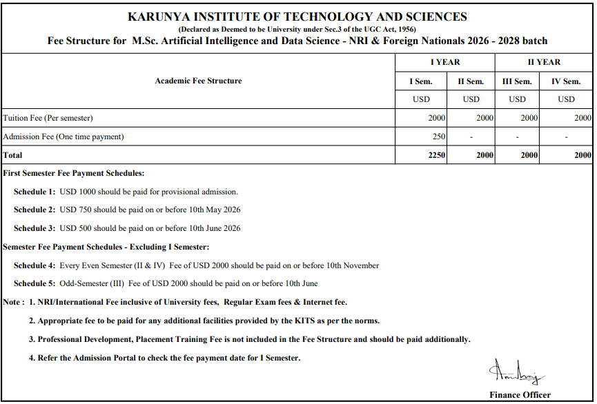 14 Nov, 2025 Karunya University has released M.Sc Digital Forensic and Information Security Fee Structure 2026-27. The total academic fee is ₹ 2.75 Lakhs. Check details.