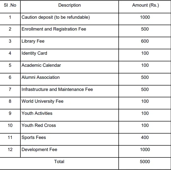 - This includes a total tuition fee of ₹ 12,000, Caution Fees of ₹ 1,000, Other Fees of ₹ 21,000.