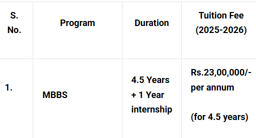 - This includes a total tuition fee of ₹ 1.15 Crore.