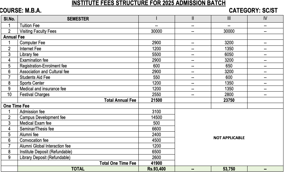 - For SC/ST category students, the total fees is ₹ 1.47 Lakhs.