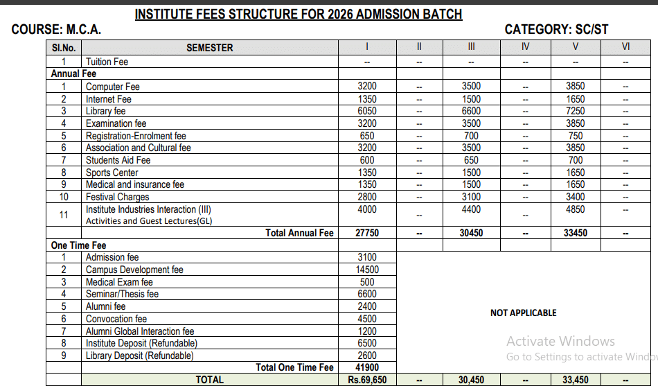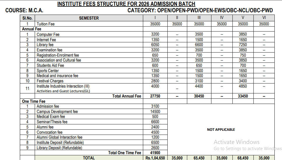 Earlier, MCA fees at NIT Trichy was ₹ 3.44 Lakhs (in 2025) for the entire course duration. This shows that the fee has remained unchanged since 2025.