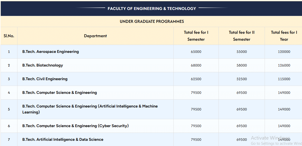 - This includes a total tuition fee of ₹ 4.74 Lakhs.