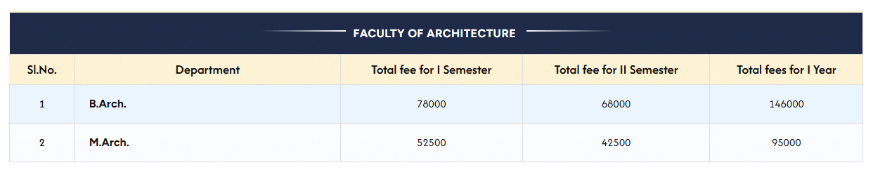 Earlier, M.Arch fees at Periyar Maniammai Institute of Science and Technology Thanjavur was ₹ 1.8 Lakhs (in 2024) for the entire course duration. This shows that the fee has remained unchanged since 2024.