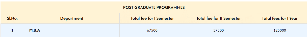 Earlier, MBA fees at Periyar Maniammai Institute of Science and Technology Thanjavur was ₹ 2.18 Lakhs (in 2024) for the entire course duration. This shows a fee increase of ₹ 22,000 over the year.