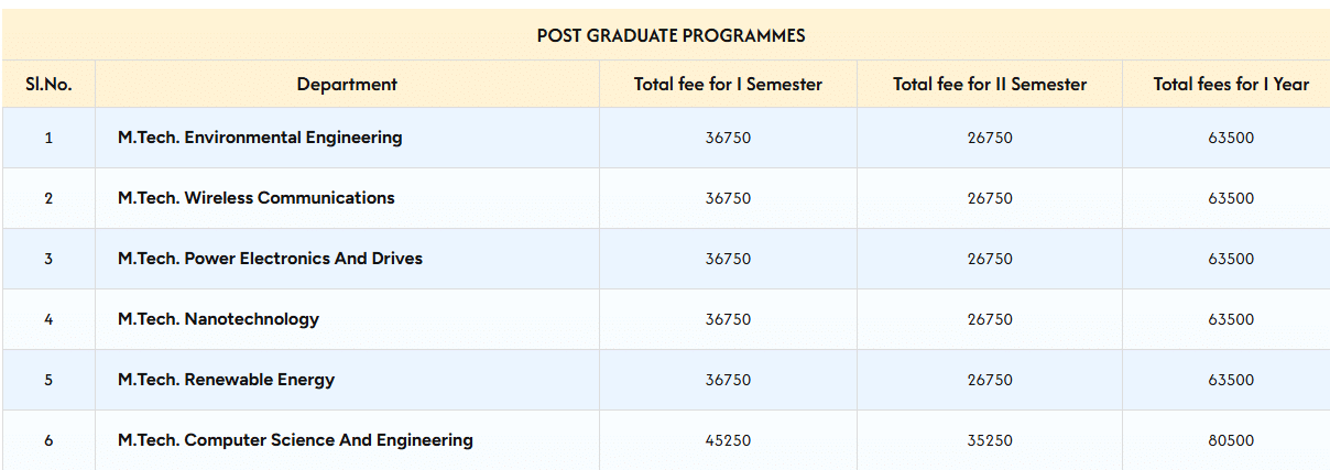 Earlier, M.Tech Computer Science And Engineering fees at Periyar Maniammai Institute of Science and Technology Thanjavur was ₹ 1.51 Lakhs (in 2024) for the entire course duration. This shows that the fee has remained unchanged since 2024.