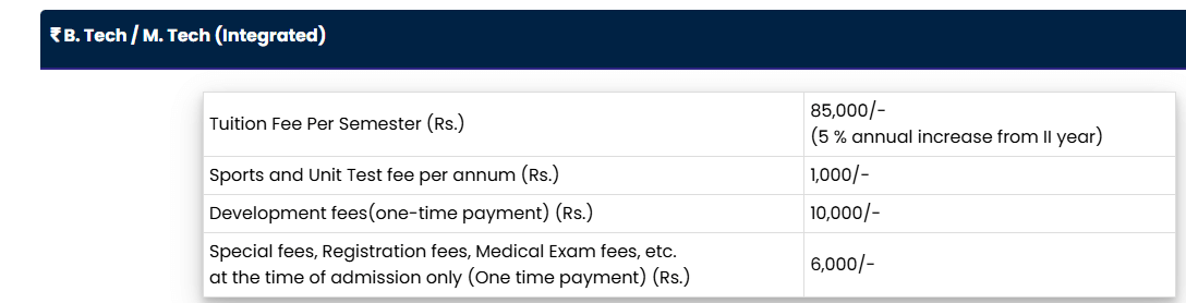 Hostel fees vary from Rs. 6,000 to Rs. 14,000 based on room sharing. The university boasts a strong placement record, with over 90% job placement, major recruiters like TCS, Infosys, and Amazon, and salary packages ranging from 3.3 lakh to 1.2 crore INR. Placement training begins in the 6th semester to enhance employability. Scholarships and educational loans are available, with the Dean's merit list offering fee reductions and GRE scholarships for high achievers.
