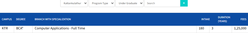 Earlier, BCA fees at SRM University Chennai was ₹ 3.45 Lakhs (in 2024) for the entire course duration. This shows a fee increase of ₹ 40,000 over the year.