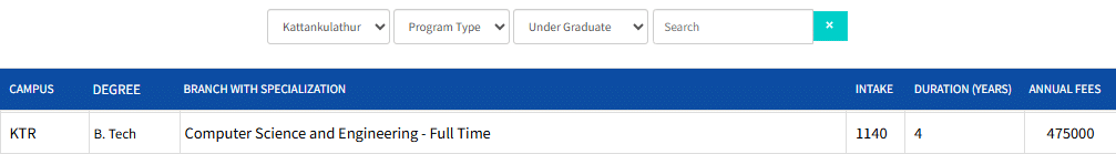| College | B.Tech Computer Science and Engineering Total Fees |