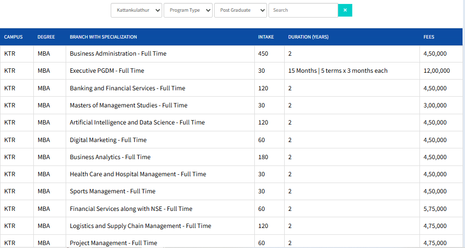Earlier, MBA fees at SRM University Chennai was ₹ 9 Lakhs (in 2024) for the entire course duration. This shows a fee increase of ₹ 10,000 over the year.