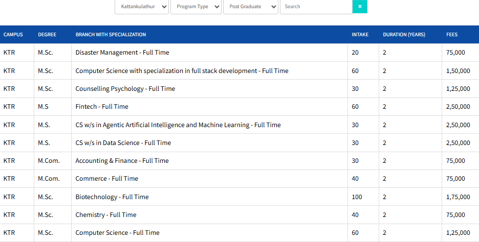 | SRM University Chennai | ₹ 1.2 Lakhs |
