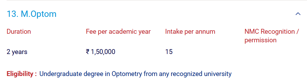 Earlier, M.Optom fees at SRIHER was ₹ 3 Lakhs (in 2021) for the entire course duration. This shows that the fee has remained unchanged since 2021.