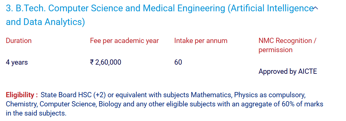 Earlier, B.Tech Computer Science and Medical Engineering fees at SRIHER was ₹ 10 Lakhs (in 2020) for the entire course duration. This shows a fee increase of ₹ 40,000 over the year.