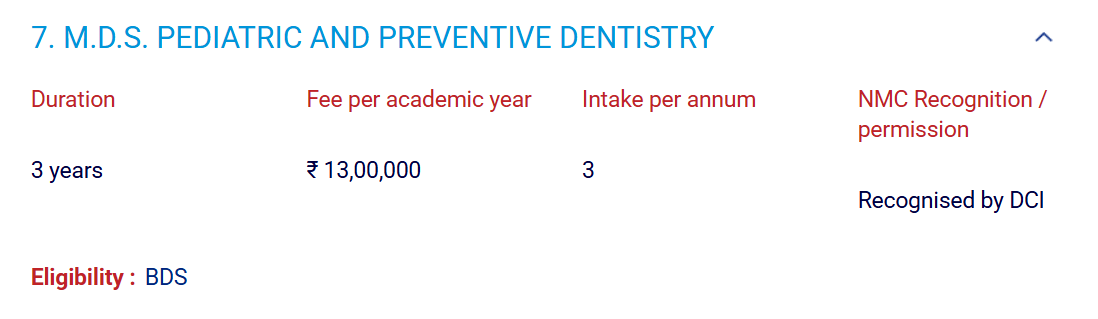 Earlier, MDS Pedodontics & Preventive Dentistry fees at SRIHER was ₹ 31.5 Lakhs (in 2020) for the entire course duration. This shows a fee increase of ₹ 7.5 Lakhs over the year.