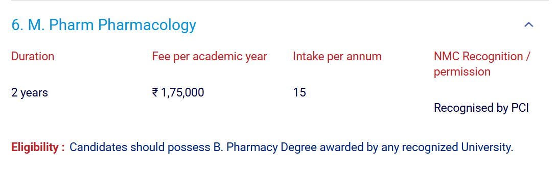 Earlier, M.Pharm Pharmacology fees at SRIHER was ₹ 3 Lakhs (in 2021) for the entire course duration. This shows a fee increase of ₹ 50,000 over the year.