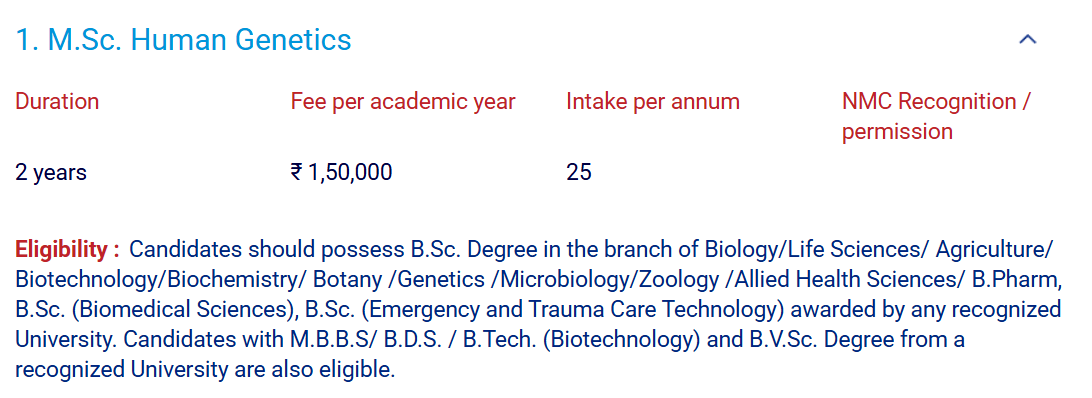 SRIHER M.Sc Human Genetics fees 2025 is ₹ 3 Lakhs for the entire course duration.