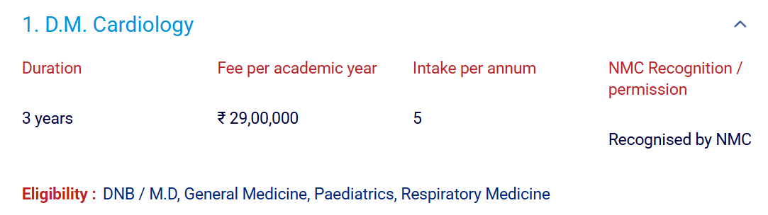 - The total fees for the DM Cardiology program at SRIHER is ₹ 87 Lakhs.