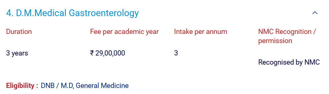 - The total fees for the M.D Gastroenterology program at SRIHER is ₹ 87 Lakhs.