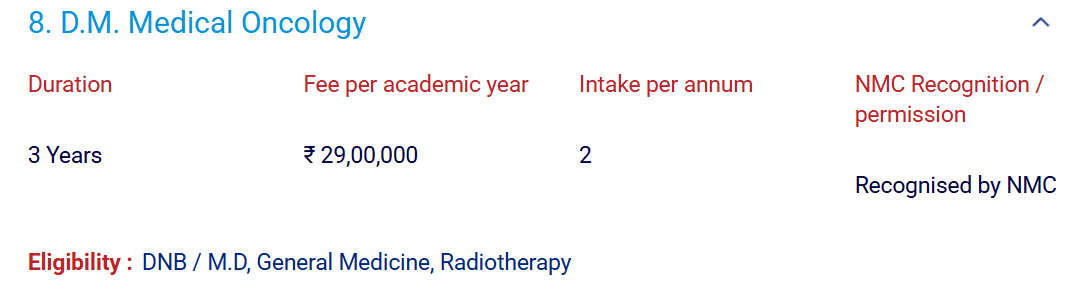 - The total fees for the M.D Medical Oncology program at SRIHER is ₹ 87 Lakhs.