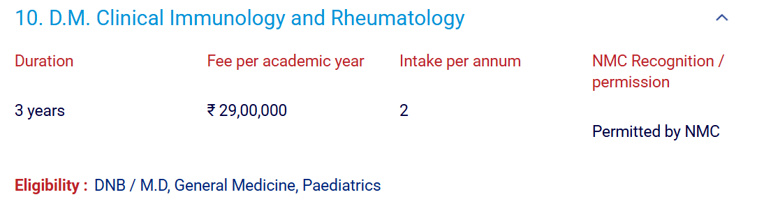 - The total fees for the M.D Clinical Immunology program at SRIHER is ₹ 87 Lakhs.