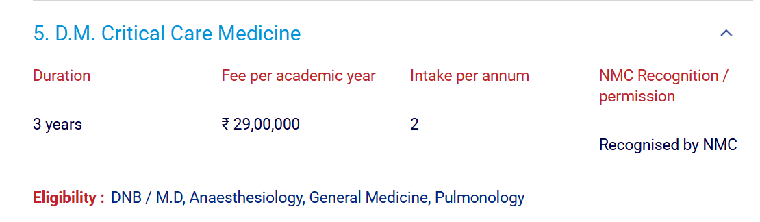 - The total fees for the M.D Critical Care Medicine program at SRIHER is ₹ 87 Lakhs.