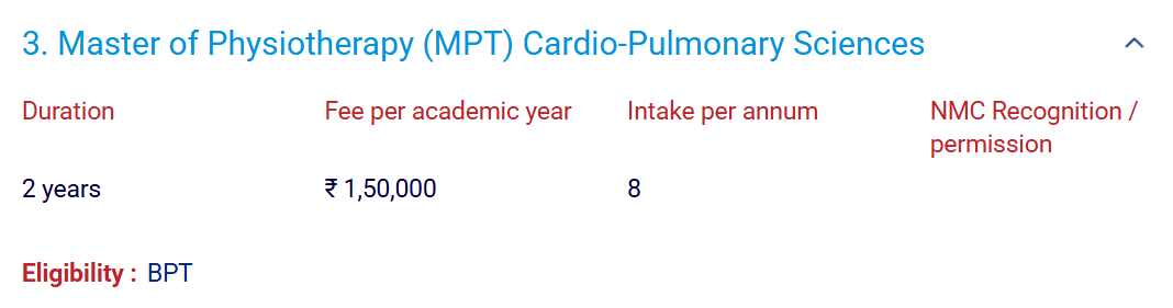 Earlier, M.P.T Cardiopulmonary Sciences fees at SRIHER was ₹ 2.5 Lakhs (in 2021) for the entire course duration. This shows a fee increase of ₹ 50,000 over the year.