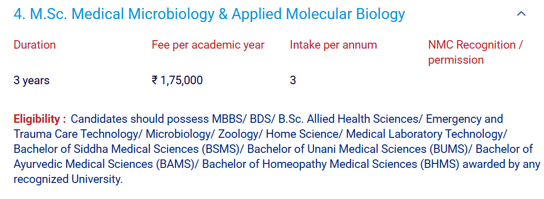 Earlier, M.Sc Medical Microbiology & Applied Molecular Biology fees at SRIHER was ₹ 3.75 Lakhs (in 2024) for the entire course duration. This shows a fee increase of ₹ 1.5 Lakhs over the year.