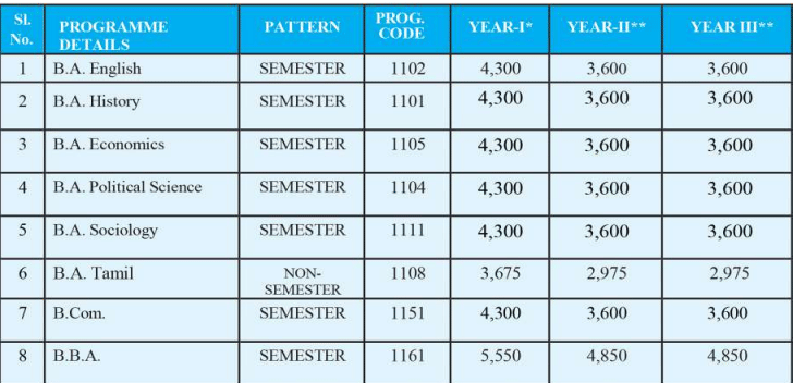 | Fees (2025 - 2026) | Year 1 (in INR) | Year 2 (in INR) | Year 3 (in INR) |