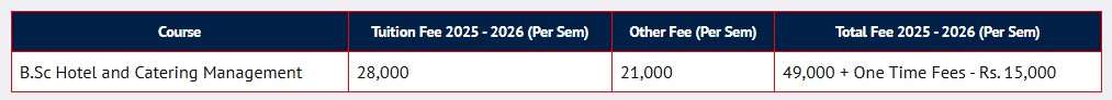 Earlier, B.Sc Hotel And Catering Management fees at VISTAS Chennai was ₹ 2.76 Lakhs (in 2024) for the entire course duration. This shows a fee increase of ₹ 33,000 over the year.