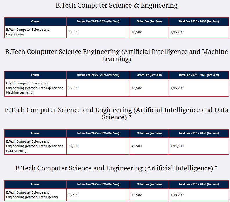 - This includes a total tuition fee of ₹ 2.7 Lakhs, Other Fees of ₹ 78,000.