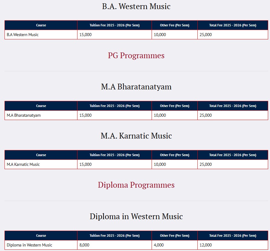 Earlier, BA Western Music fees at VISTAS Chennai was ₹ 1.38 Lakhs (in 2024) for the entire course duration. This shows a fee increase of ₹ 12,000 over the year.