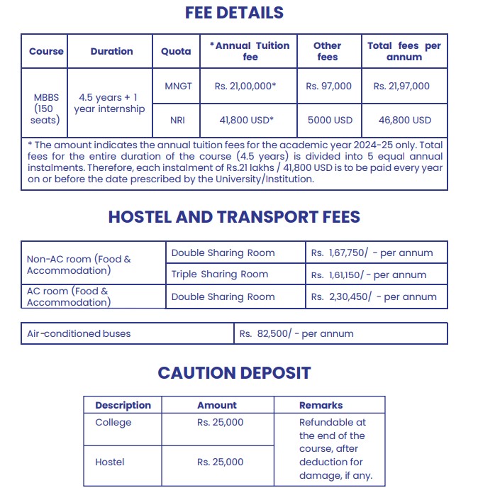 - This includes a total tuition fee of ₹ 1.05 Crore, Caution Fees of ₹ 25,000, Other Fees of ₹ 4.85 Lakhs.