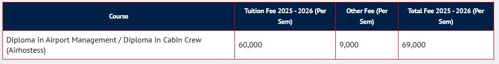 VISTAS Chennai Diploma Airport Management Services fees 2025 is ₹ 1.38 Lakhs for the entire course duration.